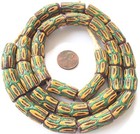Fancy Kente Design Krobo Recycled Glass Cylinder African Trade Beads-ghana