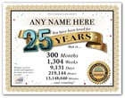 Personalized Happy 25th Birthday Certificate / Card - 25 Year Old - Present Gift