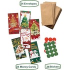 Christmas Money Cards - 24 Holders With Kraft Envelopes & Stickers, 6 Designs