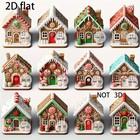 2d 12pcs Festive Holiday Christmas Gingerbread House Wooden Ornaments