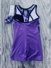 Nwt Danskin Girls Sz S Leotard W Hair Band Dance Gymnastics Shorts Purple Black