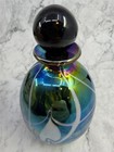 Vintage Art Glass Iridescent Swirl Feather Pulled Perfume Bottle 1990's