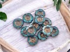 12mm Bronze Washed Blended Teal Czech Glass Hawaiian Flower Beads 12 Beads
