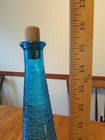 Teal Blue Thick Glass Bottle Decanter Cork Stopper 8.75 Inches Holds 30 Ozs