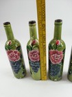 4pc Decorative Hand Painted Glass Wine Bottles Vases Pink Flowers And Grapes