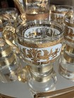 Vintage Gold Russian Glass Cocktail Pitcher & 6 Cups W/ Handles 10.74”