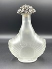 Vintage Frosted Glass 9” Shell Shaped Decanter Bottle Floral Metal Cork Stopper