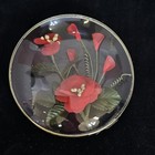 Vintage Floral Glass Dome Display Case With Red Flowers Home Decor Collectible