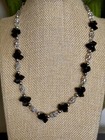 Sterling Silver Necklace Bracelet Set Clear & Black Beads Rhinestones Rondels