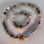 925 Sterling Silver Necklace & Bracelet Set Handmade Iridescent Black Glass Bead