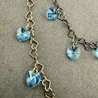 925 Sterling Silver Blue Glass Crystal Heart Necklace And Bracelet Set Signed