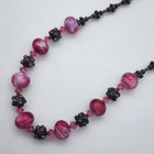 Pink Art Glass Sterling Silver Beaded Bracelet Necklace Set