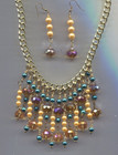 Necklace & Drop Earring Set Pastel Smokey Beaded Glass Crystal Style Gold Tone