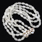Czech White Atlas Satin Glass Beaded Multi 3 Strand Necklace & Earring Set