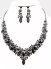 Black Necklace Crystal Pageant Silver Wedding Rhinestone Jewelry Set Earring