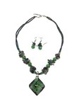 18" Gray / Green Glass Necklace & Earring Set