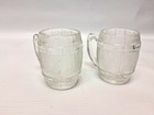 2 Vintage Clear Glass Whiskey Barrel Shaped Shot Glasses With Handles