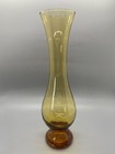 Vintage Amber Glass Vase 10” Tall Decorative Mid Century Flowers Decor