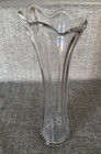 Vintage Clear Glass Fluted Ruffled Edges Swung Tall Bud Flower Vase 15 In Height