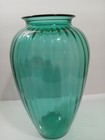 Large Green Vtg Glass Vase 10" Tall 8" Wide