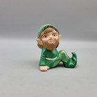 Vintage Ceramic Green Dwarf Gnomes Elves Christmas Figurines Lot 2ct D4709