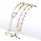 Virgin Mary Pendant Cross Necklace 14k Solid Tricolor Gold Beads Rosary Necklace