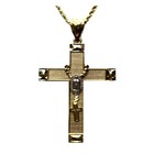 14k Yellow Gold Rosary Pendant Jesus Cross Mary Necklace Charm 33mm