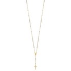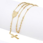 18k Yellow Gold Thin Rosary Necklace Miraculous Mary Medal Jesus Cross 2mm Balls