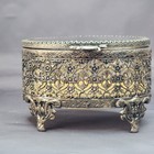 Art Deco French Ormolu Filigree Jewelry Casket Trinket Box Vanity Casket Antique