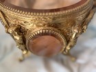 Antique Brge Ornate Gold Ormolu Round Jewelry Casket Box Beveled Glass