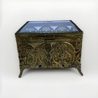 Ormolu Brass Trinket Jewelry Box Beveled Glass Vanity Casket