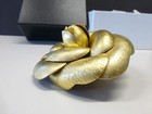 Chanel Camellia Flower Pin Brooch Gold Leather ? 3" New In Box
