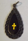 925 Sterling Silver Braided Edge Black Pear Shape Gold Color Cross Pendant Medal