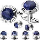 Cufflinks And Tuxedo Studs Set With Gift Box, Silver And Gold Blue-vein Stone