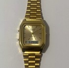 Casio Aq-230ga Digital Analog Dual Time Gold Vintage Mens Womens Watch Brand New