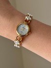 Elegant Women Pearl Watch Bracelet In Gold Tone With Minimalist Vintage Style
