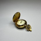Majesti Pocket Watch Gold Tone Quartz Roman Numerals Date Hunter Case Chain Fob