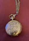 Majestron Stag Deer Pocket Watch Gold Tone Hunter Case Engraved Quartz Vintage