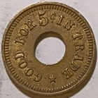 Vintage-trade Token-blank-good For 5 Cents In Trade