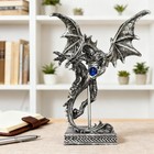 Dragon With Blue Orb Gothic Fantasy Statue 8 1/4" Tall Silver & Black Finish