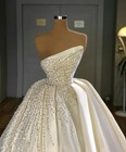 Elegant Pearls Strapless Wedding Dress Beading Princess Court Train Ball Gown