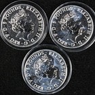 2016 Great Britain 2 Ounce Silver - Queen's Beast Lion Of England - 3 Coin Lot
