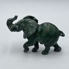 Deep Green Jade Elephant Hand Carved Sculpture Statue Good Fortune W Trunk Up 4"