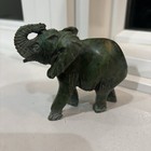 Vintage Hand Carved Stone Elephant Figurine Green Tones