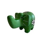 Hand Carved Soapstone Elephant Bright Green With White Floral Accents