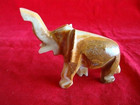 Vintage Hand Carved Stone Elephant Figurine Carving Trunk Up Olive Green And Tan