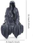 3d Plastic Halloween Grim Reaper, Goth, Black Robed Ghost Sitting Statue 8.5"h