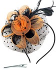Black Orange Halloween Fascinator Headband Tea Party Veil Hair Clip Hat