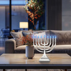 Zion Judaica 9" Led Hanukkah Menorah Medium Metallic Silver Battery Or Usb C Typ