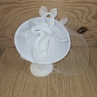White Feather Mesh Fascinator Hat Clip Head Band Wedding Tea Cocktail Party